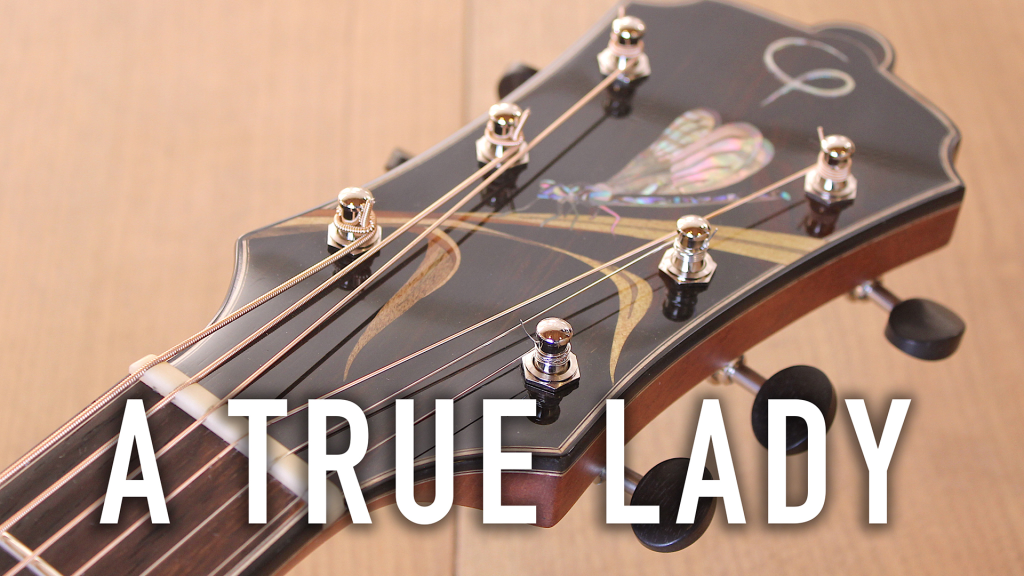 Fond et éclisses : Palissandre de Madagascar – Table: Adirondack torréfié – Manche : acajou de Cuba pommelé – Touche : Palissandre – Repères bord de touche : nacre MOP – Chevalet : Palissandre – Placage de tête : palissandre – Incrustation tête et touche: nacre MOP, Abalone, nacre noire et rose/ Tulipier, Érable teinté– Fileterie: Palissandre –Rosace: palissandre – Barrage en X épicéa de type « scalloped » – Diapason 14 cases hors caisse: 648mm – Sillets : Os – Largeur sillet 44 mm- Mécaniques: Waverly dorées boutons Ébène– Finition: vernis cellulosique High gloss – Amplification : MISI Trio Air – Livrée en éui rigide Hiscox Deluxe Ivoire